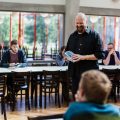 Finally! Originally uploaded by freeflyfrog77. new flickr folder freeflyfrog77 created this beautiful lamp out of a 5-foot sheet of paper! watching the build process on this is fascinating- make sure to read the notes, too. here’s the description of how it was designed: I used a piece of paper from a roll we have at work (kids draw on it off an easel). I liked the stiffness of it. I used a yard stick and ruler to score all the folds before hand. With a little pressure the paper just “popped” into its fold. It required fine tuning at the points though. As for the pattern it is actually really simplistic. I took a piece of paper one pleat wide and simply folded it to a shape I liked the profile of the lamp to be. I then transferred it on to the paper flipping the angles every pleat…The clincher I think was the scoring. I did it with a mechanical pencil tip with no lead in it. I went through in a few spots …
